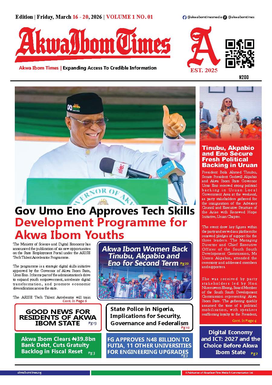 The maiden edition of AkwaIbomTimes Newspaper will be on the tabloid for March 16 - 20, 2026.