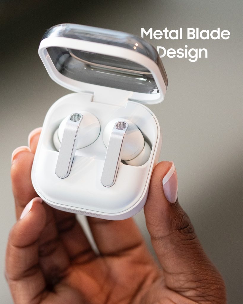 The latest Galaxy Buds Pro feature a refined canal fit design with silicone ear tips that improve comfort and passive noise isolation. Samsung has adopted a more ergonomic shape that sits securely in the ear, making the earbuds suitable for long listening sessions and daily use. The charging case introduces a semi transparent lid, allowing users to quickly check the status of the earbuds without opening it. The earbuds are available in Black, White and an online exclusive Pink Gold finish.